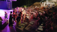 Развлечения вечером. Это дискотека. Примерно сразу после детского времени. Когда заканчивается, не скажу. Но скажу что, к вечеру выплывали люди, которых вообще не было видно. Я так понял они «тусили» вечером-ночью, а потом сидели целый день у бассейна отходили.