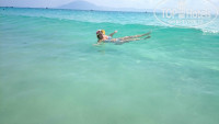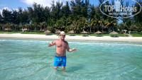 Пляж красивый, народу на пляже единицы, море бесподобно! Каждое утров 6 часов утра после выпитого по кружечке местного кофе с молоком (очень вкусный) ходили до деревни, босиком-идешь, как по полу, приятный твердый белый песок. Смотрели на вьетнамцев, как они добывают морепродукты , как делят, а они на нас, нам было очень интересно. В море никаких медуз не видели, море чистое, очень комфортное. Я так хотела бы туда внучку 5 лет взять, но вот с кормлением как- там все с приправами, специфическое, но все-таки придумаю что-нибудь, для ребенка море и пляж лучше не придумать. Моя знакомая с ребенком возит мини мультиварку, возможно так же поступлю. Никаких блох не видели, никто нас не кусал. Туристы с Нячанга были в восторге от пляжа и моря, лежали прямо на песке, на полотенцах и без полотенец, т.к. для них платные лежаки с зонтами.