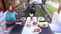 Ужинали уТена и деньги меняли у него, у него курс получше, чем в аэропорту . Все очень и очень вкусно! И лягушек попробовали , ели лобстера, креветки, рыбку, кальмаров и в кляре и без кляра, лангустов, фарширов. блинчики -все очень вкусно, быстро, с пылу с жару, суп с крабовым мясом и т.д. Все были довольны, т.к. знакомились со всеми здесь же, делились впечатлениями о еде, здесь же пробовали у друг друга. Отравлений не было за две недели, не слышали. Насчет чистоты-посуда чистая, скатерти простенькие, но чистые, застилают при тебе. Умывальник есть , можно руки помыть перед едой, салфетки влажные подают перед едой, сами хозяева одеты чисто, аккуратно. Обедали мы фруктами, которыми нас угощал Тен , мы их не успевали съедать.
