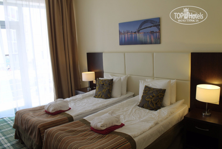 Переехали в Bridge Resort из другого пансионата Адлера. Можно сказать сбежали оттуда в Bridge, тем самым спасли свой отпуск. Номера (мы жили в номере 4*) в отеле очень комфортные, есть все, что необходимо: фен, сейф, утюг, гл.доска, чайник, чашки, телефон (связывались только с администратором для вызова такси и заказов в номер, удобно), TV само собой, вода ежедневно по количеству проживающих (не газированная + газированная). У нас в номере были очень удобные матрасы на кроватях, спалось замечательно. Очень понравилась СПА зона отеля, в хорошую погоду мы туда не заглядывали, но, с удовольствием провели там время когда пару дней шли дожди, а затем еще день море штормило. Для детей есть площадка, в основном, кроме батутов рассчитано на малышей. Дети постарше гоняли на электрических самокатах. Анимация в отеле есть. На территории отеля есть аптека, магазинчики и кафе (помимо лобио-бара в главном корпусе). Были проблем с кондиционером. Когда въехали в номер он громко "свистел". Позвонили администратору, в тот же день пришел мастер и все исправил. В целом - у нас это был единственный минус. Если не считать соседей с верхнего этажа, которые въехали за пару дней до нашего отъезда и закидывали вечерами наш балкон шелухой от семечек. Но, тут уже претензии не к отелю, как раз горничная быстро нам весь этот ужас убирала, еще и извинялось за постояльцев.