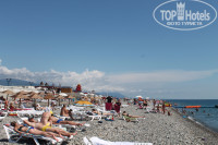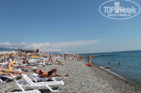 До пляжа идти совсем не далеко, ж/д в этой части Адлера нет, поэтому и нет жутких подземных переходов. Пляж отеля широкий, лежаков всегда хватало, один раз не смогли найти свободных сами, нам оперативно помог сотрудник отеля. Море было чистое, но заход довольно крутой. Через 2-3 метра уже очень глубоко.