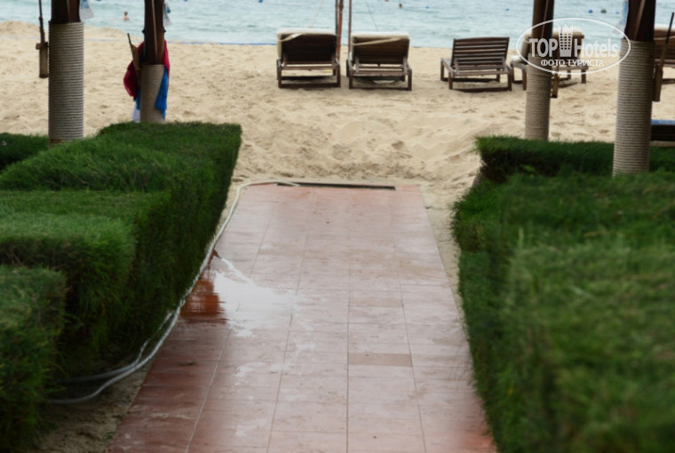 Пляж: широкий, лежаков полно, гостей явно меньше, все мигрируют с солнышка - под навес.