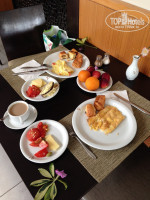 Приехали 21 мая, ХОЛОДНО!!! Грустно печально но факт. Приехали утром около 9 часов. Попали как раз на завтрак, и мы сразу отведали их чудесные булочки и выпечку. Круассаны.. они великолепны. Завтрак нам понравился, все стандартно.. свежее.. и вкусное. Далее ресепшен. Заселять нас отказались, ждите до 12, потом до 13:00, Заселяли долго.. ресепшен состоял из недовольных физиономий.. вроде и денег не просили.. в общем поняли что нам не слишком рады. Дождались, заселили, никакого си вью разумеется, окна балкона выходили на обратную сторону отеля. Ну и ладно. Разместились.. и умерли в сон. После сна оделись в самое теплое что взяли и пошли к морю.. пляж совсем свеж.. шезлонги перевернуты.. будто пляж еще и не функционирует. Ветер очень холодный дул, потом дождь закапал. Ну что пошли осматривать отель. По комплектации номеров все хорошо, полотенца.. гели, все как полагается, для пляжа полотенца брали за депозит, каждое утро меняли на ресепшене.