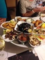 В последнюю ночь попали в ресторан за территорией отеля.. напротив него сразу.. на закуску морепродукты, приготовлены были плохо, вино вкусное или просто компания душевная была)) и еще был у меня рис с мясом.. тоже за отданные деньги не впечатлило.