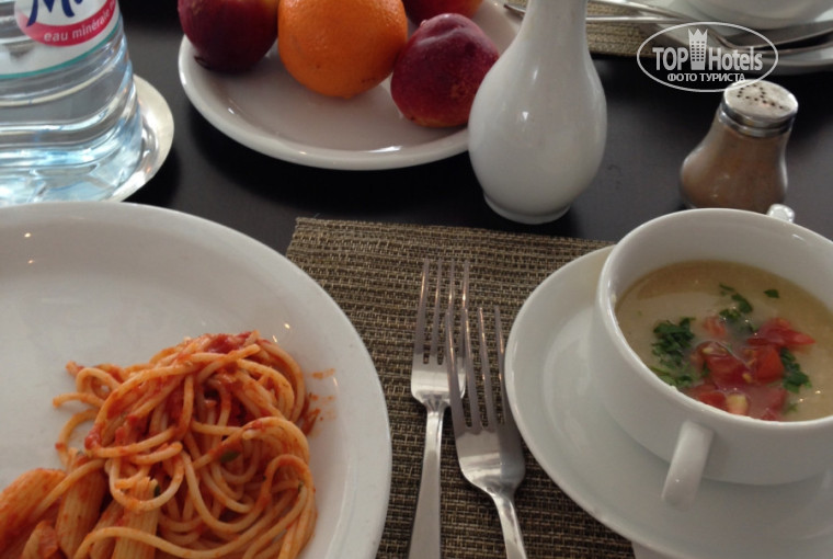 Предвзятое отношение к русским я почувствовала только на ресепшене, в ресторане все нам были очень рады, постоянно общались и шутили, официанты все молодцы! Кроме того сервис и вкусовые качества хочу отметить отдельно. Хозяин отеля француз и еда адаптирована под европейцев, кус кус обалденный, мне очень понравилось их мясо, оно было приготовлено очень вкусно, ягненок, баранина.. я все это ела.. хотя мясо в таких поездках мало когда нравится.. отдельно стоит отметить подачу блюда. В завершении нашего пребывания попали на красочную подачу главного мяса.. с музыкой, огнем, танцами и аплодисментами. Отличное настроение обеспечено. На ужин и на обед столы всегда покрыты свежими белыми скатертями. Отдельно плюс. На обед и на ужин также всегда подавали очень вкусное мороженое. В общем наши животы в тунисе улыбались постоянно. Еда показалась гораздо вкуснее и турецкой и египетской.