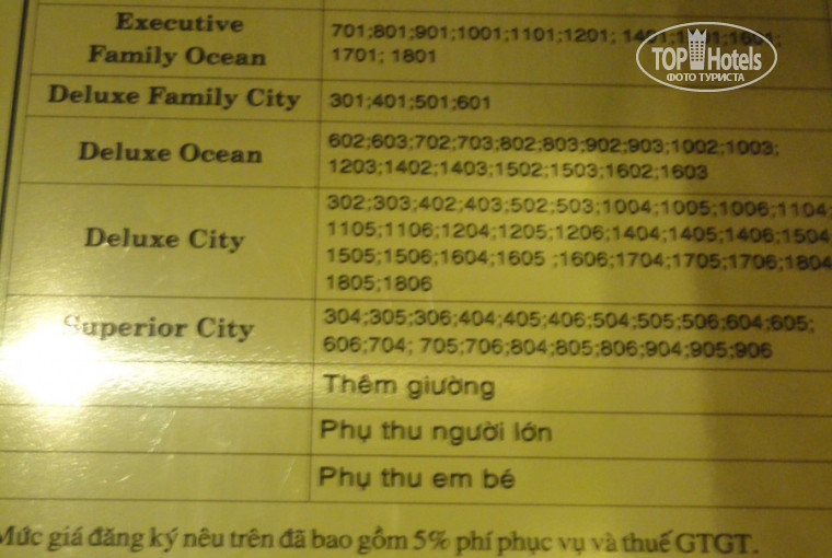 Плюс отеля это его расположение: не далеко от моря, не слышно шума дороги, все немного дешевле чем в европейском квартале. Номер был де люкс с видом на город (403), но боковой вид на море был, в отеле нет прямого вида на море. В номере большая двухспальная кровать, шкаф, телевизор, балкон (я взяла с собой веревку и прищепки- не пожалела, было очень удобно сушить вещи, иначе их на балконе повесить не куда), два халата и двое тапок -этим не пользовались. На полу плитка, и так как ходили босиком то весь песок с пола был в кровати, лучше бы на полу был ковролин. Рядом две стройки, мешают если открыть окно. Рядом расположенные здания и отели находятся очень близко-если не задернуты шторы видно все что происходит в номере напротив. Очень хорошая слышимость- все что происходит в коридоре (приехал ли лифт, пришли ли соседи по этажу), лифт начинает ездить с 5 утра. Завтраки- больше национальная кухня, есть правда яичница или омлет, печеная картошка с беконом, белый хлеб, джемы, масло, остальное на любителя. Из фруктов-арбуз, драконий фрукт, маракуйя, бананы и еще пара неизвестных и не очень вкусных. Чай, кофе, вода, соки. Номера обычные, но по состоянию ванной (по крайней мере у нас в номере) не похоже что отель открылся несколько месяцев назад-на полу на плитке много сколов, ванна не примыкает к стене и следовательно когда моешься вода течет на пол -постоянно лужа. Ежедневно клали на двоих: 2 зубные щетки, одну (! ) шапочку для душа, 1 (!) гель для душа, 1(!) шампунь, 1 (! ) мыло (и то это клали если истратили предыдущее - если мыло/гель/шампунь еще не закончились нового вам не положат-очень экономный отель). Уборка номера и замена полотенец каждый день, постельное белье не меняли первые 6 дней, до нас только потом дошло, что нужно положить фиолетовую бумажку с просьбой поменять белье (хотя на ней написано -если не класть то меняют 1 раз в 2 дня), после того как положили - белье поменяли. Есть два русских канала. Бассейн на 20 этаже -теплый, не глубокий (140 см)-на лифте поднимаешься до 18 этажа и 2 этажа идешь пешком. В отеле нет 13 этажа :). Wi-Fi есть в номере, но иногда с ним бывали перебои. Несколько раз выключался свет в отеле. В номере есть сейф (не пользовались-больно легко можно его открыть, нажав кнопочку сзади), вещи оставляли в чемодане под замочком. Есть минибар-платный, каждый день 2 бутылочки воды по 0.33-бесплатно.
