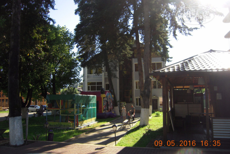Отдыхали в мае 2016, из положительных эмоций хочу отметить место расположения и доброжелательное отношение персонала. Номер в мансарде маленький с узким окном под крышей, мы его поменяли из-за того, что было две односпальных кровати, (за доплату в 3 тыс. руб. с небольшим поменяли на стандарт - за 7 ноч.). В тур входило 3-х раз. питание, правда не ждите изысков, была простая еда из столовой, но повар очень старалась, как могла, оставить приятное впечатление. За 7 дней один раз убрались с заменой полотенец (2 полотенца на каждого,а должно быть 3), кондиционер хорошо работал, что не скажешь о ТВ, по приезду вообще ни чего не работало, потом проплатили и о счастье;) ! 2 канала заработало. (Но ТВ не актуально для лета, т.к думаю с погодой повезет (у нас были ливни) и люди будут отдыхать вечером в кафе или на море). Бассейн с подогревом работал. На территории строят новый деревянный корпус, пространства и ландшафта не ждите, вида из номеров нет, ни с одной стороны, за видами пешком выше в гору ;).