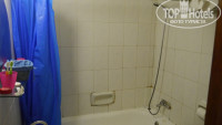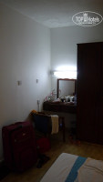 Две кровати. Мы их сдвигали, но при каждой уборке, уборщицы их опять раздвигали)) прикольно. На окне две льняных ткани (шторками сложно назвать) Шифоньер с тремя вешалками (одна из них брючная) - маловато, одна прикроватная тумбочка, зеркальный трельяж и маленький комодик. В принципе - жить можно. Но старайтесь свет не включать - конечно стены облезлые. В ванной в умывальнике, если откроете сильный напор воды - сразу наберется полная раковина воды. В общем, про ванную комнату лучше не рассказывать - добавлю фотографии, смотрите сами.