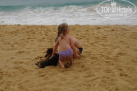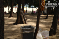 Пляж просторный. Действительно есть собаки. Если их не дразнить то не укусят. Дети с этими собаками иногда даже играют. На пляже есть мусорные контейнеры, поэтому большинство отдыхающих на пляже не сорит. Так же на пляже можно заказать массаж, но мы ходили на территории отеля. Пляж оборудован фонарями, и ночью немного подсвечивается. Море очень теплое, красивое и приятное. Песок на пляже нежный и не горячий, приятно ходить босиком. Иногда были сильные волны, которые не позволяли зайти в море, тогда отдыхали у бассейна.
