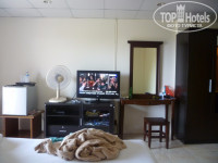 Номер уже не такой свежий как ванна: старый карниз, выключатели света, грязные стены. Но для комфортного отдыха в комнате было все необходимое шкаф, несколько тумбочек, телевизор, маленький холодильник. кондиционер, вентилятор.