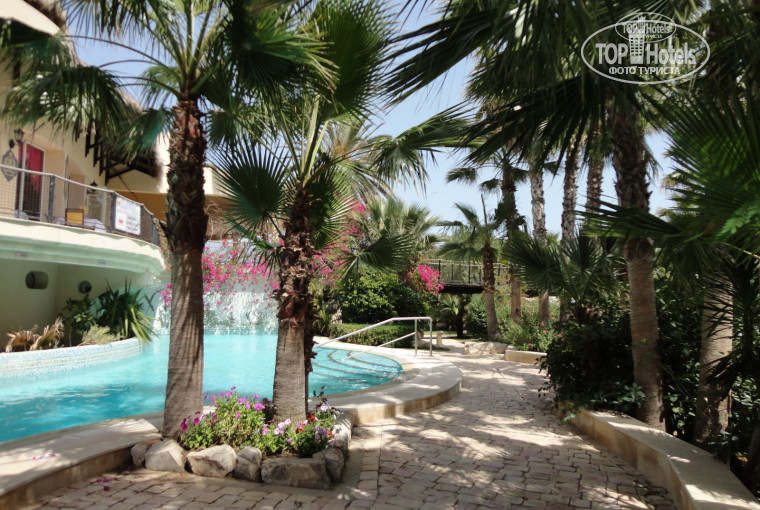 Территория очень понравилась – зеленая, красивая, ухоженная. Несколько бассейнов, в том числе с горками, релакс с джакузи и водопадом - они не подогреваемые, но теплее моря. Питание – много написано – отлично: много вкусного, просто съедобного и совсем несъедобного (в плане перца))), главное есть выбор на разный вкус. Также есть снек-бары кому хочется еще перекусить. Напитки – смузи (на завтрак), фанта, кола, спрайт, из автоматов «юпи», кофе-машины – в ресторане, на пляже и в лобби. Алкоголь – в ресторане, на пляже и у бассейна – пиво и тунисские вина (сухое красное, розовое, белое), крепкие напитки и коктейли – только в лобби и Капитан-баре – все хорошего качества.