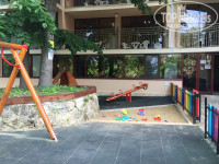 Есть бассейн, небольшая внутренняя территория,народу полно!