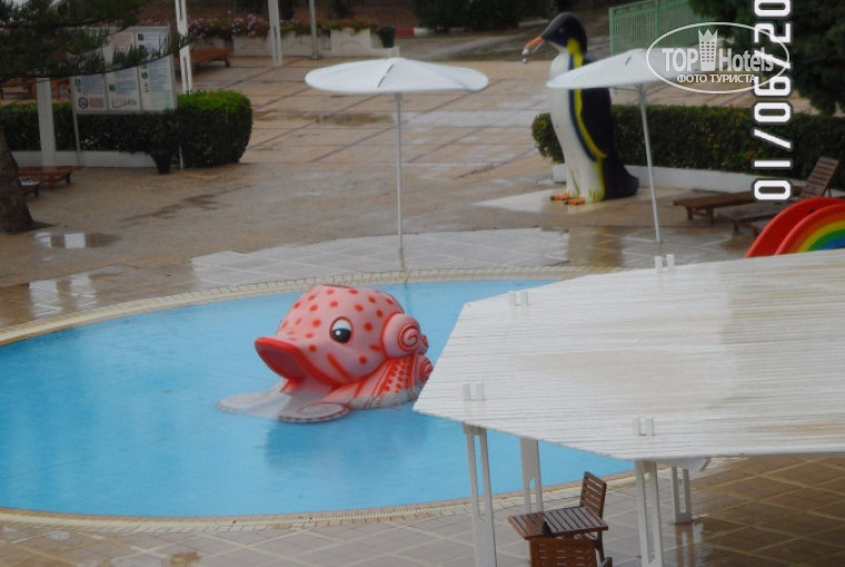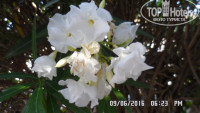 Потрясающее расположение относительно моря - да еще и в райском саду, окаймляющем отель - ну что можно еще придумать для полного счастья. Птички поют, кошечки бегают, цветочки благоухают. А уж если после жары пройдет живительный средиземноморский дождичек - так и вовсе жизнь удалась.