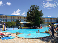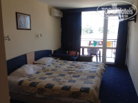 Отдыхали в начале июня. Путь от аэропорта Бургаса до Солнечного берега занял примерно 40 минут. Приехали в отель в 15.00. Сразу заселили, но стоит заметить, администратор делала это медленно, постоянно отвлекаясь на посторонние дела, разговаривала с нами на ломаном русском. Паспорта у нас забрали, отдали их на следующий день ( для чего им паспорта мы так и не поняли, видимо, списывали наши данные). И так, при заселении выдают ключ от номера, два пульта от телевизора и кондиционера, застегивают на руках браслеты жёлтые или синие, в зависимости от типа питания. У нас НВ, поэтому жёлтые. Всё включено - синие.