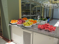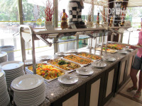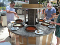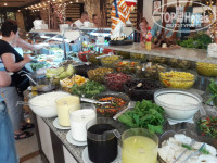 Питались в столовой, всегда были свободные места, официанты работают очень быстро. По поводу еды...у всех вкусы разные. Нам все понравилась, разнообразие мяса(говядина, телятина, курица в разном исполнении), много салатов и зелени, различных закусок, несколько видов супа-пюре, постоянно разная рыба на гриле и просто пригатовлена, овощи на гриле, запеченые, вареные, очень вкусные сладости.Кстати, на втором этаже есть кондитерская. Также есть диетическое питание - вареная курица, овощи, кашки всякие. Из фруктов были яблоки, апельсины, абрикосы, алыча, арбузы, дыни. На завтрак йогурты, блины, джемы, яйцо. Также в зале стояла бочка с вином белым и красным, можно самим наливать в бокал.
