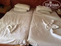 Номер у нас был стандарт на 2 этаже около ресепшена. Номер был староват (как и сам отель), однако, чистый и убранный, постоянно делали нам на кровати различные фигуры из полотенец. Несколько русско-язычных каналов, интернета нет. Фен работает хорошо, как и кондей.