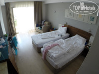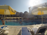 Отдыхали в этом отеле в августе 2015г. Перед тем как ехать, читала много отзывов о нем. Многие писали, что были проблемы с заселением (в большинстве случаем в том, что вместо 5* селили в 4*, оправдываясь тем, что нет свободных номеров в 5*). Перед отъездом начали немного переживать. Но все обошлось.По приезду в отель нас примерно через час заселили в номер. Красивый вид с балкона на соседний отель и дорогу, немного видно море.