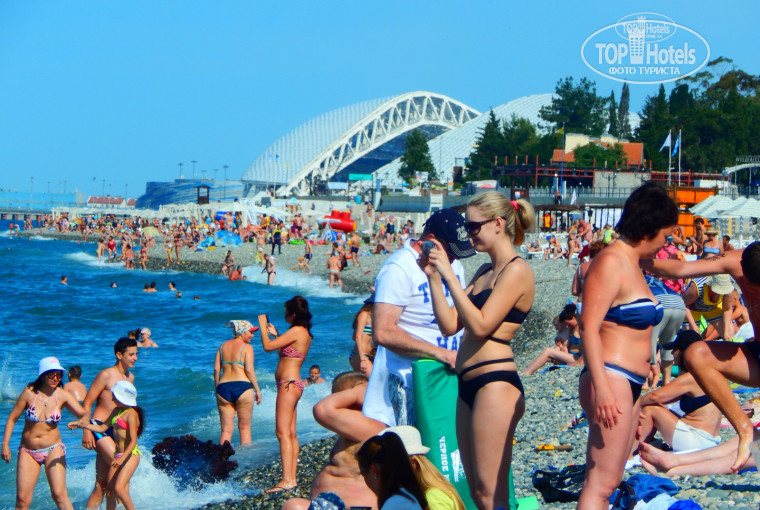 отель новый(но уже пошарпаный),все разваливается,осыпается.заселение ровно в 14-00,мы приехали в начале третьего и....ждали заселения целый час!номер стандарт на троих - 2 взрослых и ребенок.номер дали в 15 корпусе,через дорогу от русского дома. зачем переплачивать?долго не могли найти раскладушку! уборщица принесла сломанную, на наши вопросы ответила:"ничего незнаю,первый день работаю". пришлось идти на ресепшен,где нас встретили не очень приветливо.мешали сидеть за стойкой? кстати сказать.ресепшен находится не у входа , а в середине квартала!кто первый раз придеться поискать.убирали плохо,только выносили мусор,но два раза за 10 дней поменяли постельное белье! шампунь и гель для душа клали только по требованию.в номере нет кружек.и балкона тоже нет,территория большая, не очень много зелени,но отель еще недавно построен.пляж недалеко,но не 50 метров,как обещено, а 350.пляж большой, но очень крупная галька! .туалетов на пляже нет, есть через дорогу от пляжа - 35 рублей.так неплохо.один раз съездить можно.вобщем средненько.