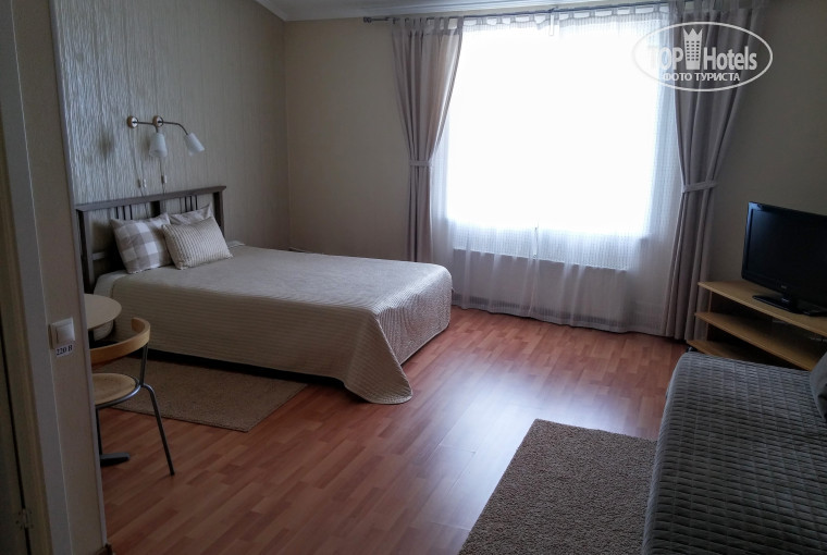 Отличный отель. Низкая цена, новые современные номера, близость магазинов, кафе. В отеле всего 7 номеров на 2 и 3 этажах. В номерах вся мебель из IKEA. На первом этаже продают блины, кофе, мороженое. На втором есть просторная гостиная зона. Виз из окон с одной стороны на гору Зеленая, с другой на промзону. В коридорах стоят кулера с водой. Отель в самом центре города. Можно поставить автомобиль прямо перед отелем, но мест совсем мало. От курортной зоны Шерегеша в 3,5 км. Из минусов - если жить летом, то не хватает кондиционера.