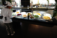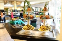 Основной ресторан – скорее столовая (особенно по запаху) с вентиляцией у них проблема, у входа кондиционеры дальше открытые окна и даже воробьи летали. Голодным не останешься, выбор относительный, приедается быстро. Сыры, мясо, колбасы морепродукты: ракушки, рыба, креветки – из лотков (каждый день), бывало и жарил повар, но там через очередь – постоять и не всегда хватало, со свежими овощами не очень , в Arenas Blancas и того не было. Но там картошка фри была, за то у нас чипсы. Из напитков : чай только утром (пакетики), кофе., вино – красное и белое двух видов, шампанское, пиво. Соки что были не натуральные. Из фруктов – более или менее ананасы и папая, но то же как сложится, не сезон :))) Детского стола или диетического не заметил. Мороженное пару видов, видимо хорошее иначе бы люди не стояли. Выпечка различная, пицца, конечно по питанию не Турция, НО однозначно каждый для себя что находит. Пару дней в ресторан очередь была – что бы зайти, что это было так и не поняли.
