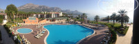 Очень красивая и большая территория. очень зеленая! Вид замечательный отовсюду, особенно из ресторана. Пляж больше рассчитан на взрослых, но для детей чудесные бассейны, плюс горки. Номера удобные, кондиционер регулируемый. Даже в самую большую жару было комфортно. Питание на крепкую 4+, мясо 2 раза в день , 2-3 видов, рыба ( иногда). Стартер не менее 2х видов в обед. Овощи в любом виде :свежие, вареные, тушенные, гриль !!! Выбор огромный! Фрукты 3 раза в день.Вино очень даже не плохое, не марочное, но вполне приличное. Плюс бар, напитки и пр... В сауне и хамаме потребности не возникло, но они тоже функционировали.