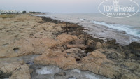 На скалистом берегу похоже старый застывший мазут. Если выходить напрямую от отеля к берегу.