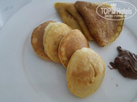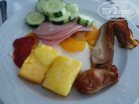 Завтрак: жареные яйца (очень жирные, просто плавают в масле), омлет на молоке, вареные яйца, жареный бекон, сосиски, блинчики, панкейки (больше похожи на печенье песочное, забитые мукой), колбасы, два вида сыра (вкусный).