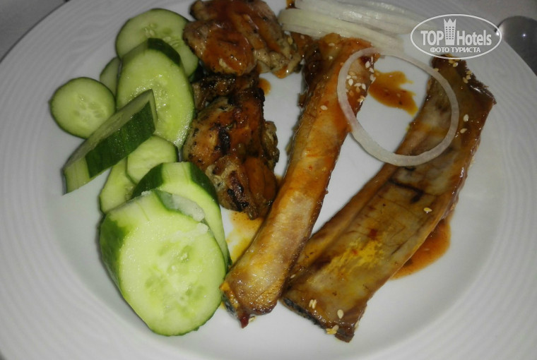 Поверьте, нас трудно удивить чем-то действительно вкусным, и страна проживания никак не влияет на это. И безвкусную еду мы не привыкли есть. Если для кого-то сухая баранина и осьминоги - это предел мечтаний, то....))) Перед поездкой мы итак знали, что нам предстоит, но в моем понимании испортить морепродукты и пересушить мясо - уровень не 5* отеля.