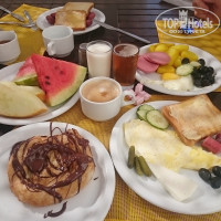 Приехали в 7 утра,заселение было почти в 12.00, но мы позавтракали,покупались в бассейне (купальники были с собой в ручной клади). Брали стандарт с видом на сад,дали бунгало с большой двухместной кроватью (2матраса) и одноместной,но ребенок спит с нами,так как может упасть там-высоковато.