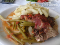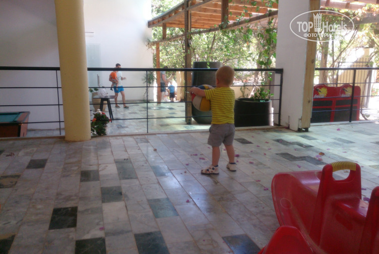 Отель хороший, приятная атмосфера, много растений! Мы заселились в номер villa family, шикарный номер, две комнаты, ванная, туалет, два огромных балкона, вид потрясающий! Заселили нас в течении часа по приезду в 10 часов утра. В ресторане всегда мясо, овощи и салаты! Еда не разнообразная, но очень вкусная! Завтраки однообразные :омлет, яйца, пончики, сыр, ветчина изо дня в день. Из фруктов были только дыни, арбузы и апельсины. Очень вкусные десерты, всегда есть мороженое. Для детей всегда есть молоко. Воду наливать надо самим в бутылки из кулера в ресторане, либо покупать. Анимации никакой нет, есть детский бассейн. Про детскую "площадку": от площадки только одно слово, это совершенно не оборудованое место в плане безопасности, наш ребенок упал и сильно ударился об мраморный пол. На площадке один пластиковый домик и качельки. Манеж -кровать для ребенка нам дали только после жалобы в турфирму, подходили с просьбой на ресепшн несколько раз результата не было. В номере не работал телевизор, кондиционер к нашему удивлению в этом отеле платный 5 евро в день. Нам повезло с погодой, поэтому обошлись без него. Они не включали кондиционер даже на ресепшн, видимо из-за экономии. Wi fi на ресепшн очень слабый, хотели заплатить, чтоб подключить его в номере, нам сказали, что такой услуги нет в данный момент. Уборка номера раз в три дня, нам этого было не достаточно, так как с моря приносили много песка, ребенок маленький пачкал простыни, стол в номере вообще никогда не протирали, приходилось вытирать полотенцем, приборов и стаканов, бокалов никаких в номере не было. В отеле один человек говорит по русски на ресепшн -Саша, уставший и умотанный, как нам показалось. Остальной персонал приветливый, жоброжелательный. До пляжа идти минут 10. Можно идти разными дорогами, но все они будут со спусками, мы ходили по правой -автомобильной, машин там не много, но зато с коляской идти удобнее. На пляже зонтик с двумя лежаками стоит 6 евро, лежаки очень плотно стоят, пляж довольно узкий, песок серый, вход в море песчаный, но бывают попадаются большие камни. Пейзажи очень красивые, дороги горные, по деревне одни подъемы и спуски, деревня сама не большая. Мы брали машину в аренду на неделю ездили по Криту, было интересно. Рекомендую отель для активного отдыха без маленьких детей