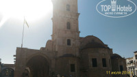 Затем мы проезжали города Ларнаку, там останавливались у цекви Святого Лазаря. Заатем была остановка в Famagusta поселок Паралимни. Со смотровой площадки в бинокли рассматривали часть оккупированной территории с 1974 года. Ничего особенного. Заброшенные пустые дома. Здесь же попробовали домашние кексики (2,50 евро) и натуральный клубничный напиток (3 евро) . Вкусно, но недешево. Посетили потом центр торговли Melekkis Center. Но времени дали очень мало, минут 20. Мы что называется пробежались быстро-быстро. Купили натуральные товары ( оливковое масло, сладости), сувениры. Здесь было дешевле,чем в магазинах Пафоса. Конечным пунктом был Протарас, церковь святого Элиаса на холме (там привязывали ленточки на деревья для исполнения желаний) и шоу танцующих фонтанов. Ужин (шведский стол) входил в стоимость. Само шоу фонтанов длилось 1 час с 21 до 22 часов. Очень красивое зрелище!!! Стоит посмотреть. Но создалось впечатление, что шоу рассчитано в большинстве на русских туристов (это в основном проявлялось в музыкальном сопровождении). В отель вернулись около 1 часа ночи.
