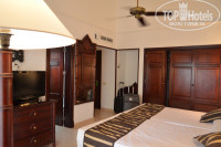 Заселение в 15-00, но мы подошли раньше, узнать о готовности номеров и нам не отказали. Достался номер в корпусе 40, сам корпус отличается от остальных в отеле, гораздо длиннее, больше этажность, с виду похож на какой-то длинный барак, как впрочем и соседний 50-й. Номера в нем также оставляют желать лучшего, увидев номер мы спросили у носильщика есть ли что-то другое на выбор, но он нам толком ничего не смог предложить, обратно, или в этом же корпусе или в соседнем, когда мы уточнили, что хотим номер не в этих двух корпусах, а в других, кои мы видели на фото при бронировании, он стал нам рассказывать сказки, что мол наш номер с ремонтом, что он люкс, что только в нем есть вайфай и прочее, ну а если мы хотим заселиться в другие корпуса, то это только через ресепшн, где нам придется подписать бумагу что мы отказываемся от «люкса» и согласны на худшее размещение, это всё оказалось не правдой. Номера в этих корпусах современного стиля, эдакая икея, мебель белая, шторы синие, что показалось не уютно и никак не вяжется с тропической страной. Но самое плохое то, что раковины находятся непосредственно в комнате, рядом с кроватью, а душ через несплошную перегородку, так что если вы захотите им воспользоваться, то вся влага тут же распространиться по номеру и окажется на вашей одежде. Переночевав в подобных условиях, на утро, мы скорее пошли на ресепшн его менять. На ресепшене есть русскоговорящий парень Роналду, он спросил в каком корпусе нам бы хотелось остановиться и есть ли у нас номер предпочитаемой комнаты. Чтож, мы прогулялись и выбрали корпуса с 1 по 4, они ближе всего к океану, а с крайних номеров ещё и открывается вид на него, лучшими показались номера во втором корпусе (подальше от основных дорожек), на втором этаже 212, 213. Один из них был фэмили, другой хоть и тоже стандарт, но за него они конечно хотят доплаты. В итоге, нам предоставили 218 номер, как и было нужно на втором этаже, океан с него видно не было, но расположением и самим номером остались очень довольны, всё близко и пляж и ресторан. Номер там оказался в классическом стиле, очень уютный, мебель вся из дерева, приятный текстиль и наконец-то отдельная ванная комната.