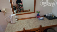 Есть фен, телевизор с двумя русскими каналами.