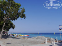 Пляж минут 7 от отеля. Небольшой песчаный. Очень мелкий, но детям именно это и нравилось, этакий лягушатник. Рядом с ним 2 мин ( от отеля 10мин) большой красивый пляж. Но там много гальки, камней. Дети отказались купаться.(Судя по гугл картам называется Санта Барбара).