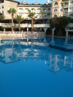Получилось так, что отдыхать вдвоем с дочкой (6 лет) в этом году пришлось вдвоем, перелапатив кучу вариантов по отдыху в Сочи, Абхазии, Кипру сопоставив варианты (голова чуть не лопнула) сервис-цена-качество, выбрал Турцию, и не пожалел!!! Так как из РФ турагентствам был запрет на продажу путевок пришлось купить и вылететь из РК-Астана. Когда определился с Турцией, выбрал этот отель так как был в соседнем (10 лет назад) и очень понравился пляж. Проблем по трансферу в отель и обратно в аэропорт не возникло, только на обратном пути час простояли в пробке из-за усиленных мер безопасности, проверяли каждое транспортное средство, из-за теракта в аэропорту Стамбула, стоит отметить очень мало самолетов и пассажиров в аэропорту, сказалось отсутствие туристов из РФ. По приезду в отель, быстро заселили и через 30 минут уже купались в море, пляж очень хороший, чистый, в 2-х шагах от отеля, посторонних нет, с одной стороны скалы с другой стороны другой отель, есть также волнорез, при желании можно поплавать на волнах, можно спокойно полежать на воде где нет волн, а так же понырять в воду с волнореза. Бассейн у отеля чистый и большой, работают водяные горки.