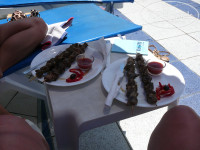 Из питания у нас были завтраки. Еды достаточно, вкусная, всегда фрукты - 2 вида. Иногда кушали в ресторане отеля и вечером. Меню большое, разнообразное, как и везде в Болгарии порции большие. Для постояльцев отеля скидка от цены меню 20%.