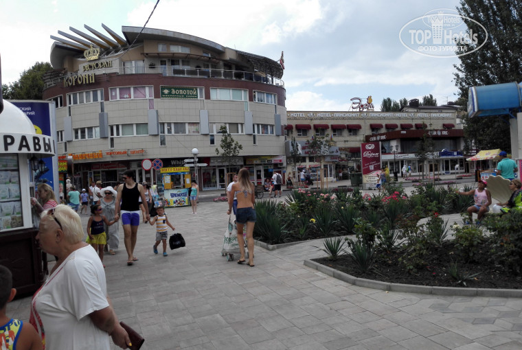 Самый большой плюс отеля - это отличное расположение. До входа на центральный пляж 350 - 400 метров. До парка аттракционов - 150 метров. До рынка и автовокзала 400 метров. Рядом много ресторанов, кафе, столовых, всяких-разных магазинчиков. Выходишь из отеля и ты уже в самом центре самых разных развлечений.
