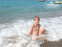 Пляж/море: пляж чистый, песок, но вход в море - галька. Море чистое, когда не штормит. Обычно до обеда море было спокойное, а во второй половине дня штормило. Глубина наступает очень быстро. Детям нужны плавательные средства (круги, жилеты, нарукавники). Лежаков достаточно, проблем нет.
