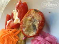 Теперь о шведском столе,который предоставляют на ужин. Стоят два накрытых небольших круглых стола с нарезкой из овощей, ВНИМАНИЕ! (фото будет прикреплено ниже) Очень часто на ужин клали СТАРУЮ ПРОДУКЦИЮ. Освещение в ресторанчике небольшое,поэтому можно не сразу разглядеть, как было с нами. Тосты оформленные с помидорами и оливковым маслом подавали 4 дня подряд, на последний- просто перемешивали оставшиеся кислые кусочки хлеба с огромным количеством помидор. Очень любят во все добавлять панировочные сухари, позже мы поняли почему. Взяли как-то раз помидорку, а она оказалась с плесенью, а сверху была засыпана данными сухарями (фото прикладываю) Позвав официанта, показали ему , на что он забрал тарелку, посмеялся и ушел, извинений мы так и не услышали.