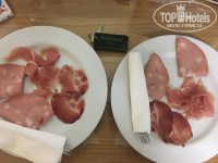 Уезжали на целый день на экскурсию, о чем предупредили заранее сотрудников отеля с просьбой подготовить сухой паек на завтрак с собой и ужин в номер к 11 вечера. ( Ездили в Венецию,поэтому вернуться к ужину не успевали). Думали, принесут нам в номер блюда,которые мы выбрали в меню. Но , увы, принесли 2 тарелки нарезанной "колабски". Сытым конечно не останешься ( Фото прикладываю).