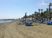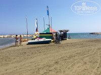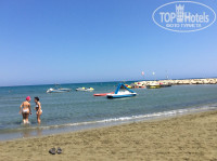 Пляж песчанный находится в 50 метрах от отеля , вход пологий , не сразу глубоко , с детьми очень удобно , море чистое , в июле очень теплое , на пляже практически постоянно легкий ветерок , загорать с ветерком полегче , ввиду ветерка вечером тоже духота практически не ощущается , солнце довольно сильное первые дни лучше мазаться 50кой , мы чуток подгорели) . Лежаков много , ввиду того что иностранцы в большинстве распологаются возле бассейнов , на пляже мест много , на все время отдыха за гостем закрепляются лежаки с зонтом , те которые выберешь из свободных , периодически можно переселятся , когда таблички просрочиваются у соседей. На пляже есть акваспортцентр , скутер -40Евро,парашют от 40до 75евро 1-2-3человека , бананы водные катамараны и тп. Бара на пляже нет , но он в 30 метрах от пляжа рядом с бассейном . Бассейнов несколько , один относительно большой с баром , второй крытый с джакузи , есть еще детский для малышей и небольшой с горкой. Вода в бассейнах довольно хлорированная детям лучше брать очки.