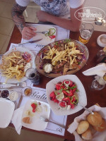 Питание завтрак-ужин, для отдыха в деревне Бали более чем достаточно. Много таверн, поэтому питаться можно и там в обед, особенно выделю таверну Галини, прямо возле пляжа рядом с отелем, порции очень большие, плюс комплименты - греческий салат, соус дзадзики и оливки, хлебушек, и десерт из вкусных пончиков с мороженым. В других тавернах комплименты в основном фрукты и хлеб. Порции мясного и рыбного ассорти большие, брали на двоих взрослых и ребёнка одну, вполне достаточно, цена 22-25 евро за порцию. На троих очень выгодно. Также ходили на пляж недалеко от отеля Bali Beach, там можно в уличном кафе купить гирос в лепёшке, цена 3 евро и очень вкусно. На пляже покупали виноград 2 евро, просто великолепный.