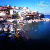 Сама деревня красивая, колоритная, много таверн, магазинчиков, сувенирных лавок. В магазине покупали воду питьевую,, виноград, вино домашнее на розлив 2,7 евро литр, пили на балконе по вечерам, тк в отеле несколько дороговато -4евро за 150 мл.