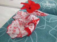 В целом отель неплохой, соответствует 3 звезды плюс, но до четвёрки по уровню сервиса не дотягивает. Заселили сразу в 5 утра, как только приехали. Правда первый предложенный номер был слишком маленький и тёмный, обменяли его за 5 долларов на вполне просторный с видом на маленький живописный дворик. Телевизор старый, показывал три программы, одна на русском новостная с помехами; кондиционер работал на одной температуре (как бы его не включали), поэтому ребёнок ночью простыл. Всё остальное работало вполне нормально. Уборку делали каждый день, но поверхностно. Оставляли по маленькой шоколадке "Алёнка", и нам выкладывали бабочек и лебедей.