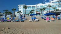 До пляжа идти минут 8, мы брали лежаки и зонт напротив отеля Вриссаки, на чеке пароль от вай фай. Приходили к 7.40-8 утра, на 1ой линии были свободные лежаки, а так до 9-10 утра места всегда были, в выходные на пляж приезжают местные киприоты, становится многолюдно и лежаки быстрее занимают. Мы уходили на обед, оставляли на лежаках полотенца, их никто не занимал. Про море и пляж сказано много, вход идеальный, попадаются камни, покрытые водорослями, вроде если пройти правее, то камней нет совсем, но по жаре идти не хотелось, до знаменитого фиг три бея так и не дошли.