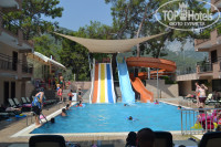 Отличный отель за свои деньги.Приемлемое питание(голодными не уходили).При 100% наполняемости не всегда хватает мест.Лучше подойти минут через 40 после начала питания.Завтракать лучше за столиками под навесами со стороны гриля,обедать за столиками со стороны бара(работают вентиляторы),а ужинать на открытой площадке возле сцены.Анимация на высшем уровне! Аня и Тайфун создают впечатление постоянного праздника.Море очень чистое и теплое. Топчанов на пляже хватает на всех.Пляжные полотенца выдаются. Территория ухоженная и зеленая.Есть детская площадка,вроде неплохая(за неделю один раз там побывали,не было времени).Водные горки работают по часу два раза в день.Как по мне,то хватает с головой.Катаются и взрослые и дети,хватает на всех и "пробок" не было.Возле горок топчанов мало.Wi Fi бесплатный по всему отелю,но работает только на рецепции и еле-еле на баре.Бар: алкоголь турецкий.Пиво терпимое.Вино,как уксус.Водка-ну это точно не водка,спирт разведенный до 28-30%.Теперь номера. Самый большой минус этого отеля.Три человека в номере помещаются более менее.Для семьи из двух взрослых и двух детей места катастрофически не хватает.При заселении можно попробовать попросить family(дополнительная стоимость 6-8$ в сутки).Убирая раскладушку экономите место. В двух словах-отель рекомендую для отдыха с детьми.Для молодежи будет не интересно.