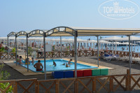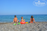 Пляж: песчано-галечный, лучше ходить в шлепках или купить на месте по 5 дол чешки, по 20 дол коралки. Пасочки особо не полепишь, но камешки перекладывать и водичку переливать из одного ведерка в другое тоже норм. На последние 4 дня мы бронировали павильоны на пляже по 70 дол в день, вот это супер! Вокруг насыпан песок и дети лепили замки и делали пасочки, у нас был вентилятор, холодильник, сейф, много тени, дети в обед спали там же, с 10 до 18 бесплатный сервис-обслуживание, свой душ и выход к морю по практически дикому пляжу без лежаков! Также на пляже есть детский бассейн с морской водой!!!! Мы один раз сходили на разведку, опять же все продумано: навес для тени, лежаки для родителей, воды взрослым по колени. Больше не ходили, так как с удовольствием купались в море.