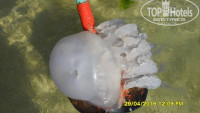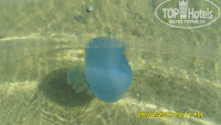 Самое главное ПЛЯЖ- ПЕСОЧЕК БЕЛЕНЬКИЙ, МЯГЕНЬКИЙ, ЧИСТЕНЬКИЙ, на пляже постоянно дежурят спасатели, секьюрити пляжное, а также по вечерам выезжают полицейские. Берег по утрам чистят от водорослей, обычно это делаю т часов в 6 утра, поэтому приходишь в 7, 8 уже все чистенько и приятно плавать, правда после обеда ветерок усиливался, появлялись волны и спокойное море, превращалось в волнующее с волнами, на которых также приятно поплавать. С утра водичка прозрачная, спокойная, море даже в 7 утра было чистое. После обеда море становилось горячее, вход в море пологий, для детишек самое то, да и для взрослых очень хорошо поваляться на мели. Приехав 21 июля и начитавшись предыдущих отзывов, мы соответственно лежаки пошли занимать в 6 утра, но и в 7 , и в 8 было полно мест. Пока не наехали местные, они любители отдыхать возле бассейнов, поэтому места занимали там, а наши соответственно все больше и больше шли на пляж, спустя несколько дней в 7 утра уже лежаков оставалось мало. Было нашествие больших фиолетовых медуз. Напрягают в море мелкие, очень обжигающие медузы. С ними будьте аккуратнее, особенно детки, ожоги оставляют сильные.