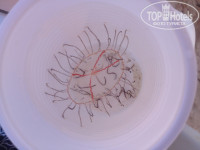Пляж: Вот тут рай!!! Белый песочек, тёплое море!!! Кайф!!! Если его не портят кусачие медузы и арабы....и не знаешь кого больше(((( Против арабов, конечно, ничего не имею, но когда собирается круг по 10-15 человек, не считая многочисленных отпрысков, кайф от купания заканчивается((( а если это в перемешку с медузами, пипееееецццццц. Большие синие медузы не доставляют столько дискомфорта, как маленькие, т.к. заплывёт одна случайно, её сразу видно, а маленьких волосатых гадов НЕТ((((( вот они и жалят((( (если фотки вставятся, увидите их на фото в стакане)