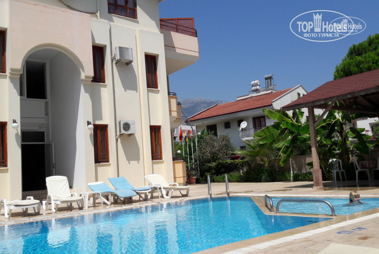 Прежде чем поехать первый раз в Турцию,пришлось почитать огромное количество отзывов об отелях. Так как поездка была первая, решили поехать сначала в 3 звезды. Данный отель легко тянет на 4 звёзды (после рассказа об отеле более продвинутым друзьям). Да,номерной фонд простенький,но чистенький. Сравнение проводилось с номерами необъятной Крымской империи, славного побережья Азовского моря. Бывали много в различных отелях и в частном секторе и везде,где можно. За те деньги, которые мы заплатили это было отлично. Еда и сервис нас устроили. Много разнообразных овощей,выпечка,зелень,курица в разных интерпретациях . И многое другое. Чай вкуснейший. Кремкий и насыщенный вкус. Выпивка местная. Не очень. Но сойдет, если глянуть цену на спиртное в супермаркете. Хочется сказать отдельное спасибо и послать много приветов менеджерам с ресепшина,ребятам студентам,обслуживающих гостей в столовой. Отдельный привет замечательном человеку,который в этом отеле как его талисман. Это Село. Замечательный шикидым и Ы, шингыр-мынгыр. Вот те слова, которые навсегда вошли в наш лексикон. А порядок слов #виски#кола#фисташки# вообще стали тайным кодом. Если Вы приедите туда, тоже будете так потом общаться. Еще менеджер Наис, влюбленный в свою прекрасную девушку. Это отдельное ми-ми-ми. Так умильно и трогательно видеть его переживания и эмоции. Но о работе не забыл ни разу. Все выполняется по движению бровей. И менеджер Илисхан тоже поражает и своей красотой и умением балансировать на грани флирта с каждой женщиной отеля. Это все создает прикольную атмосферу любви и летнего романа. Особенно для тех дам,которые прибыли в отель без мужчин. Я была с сыном и своим мужчиной. Поэтому ловеласы вели себя достойно и сдержанно. Вобщем, мы ехали отдыхать, а не ковыряться в недостатках. И получили прекрасный насыщенный отдых. Море сумасшедше красивое. Но ужасно соленое. Пляжи чистые. Но галька не дает шагу ступить. Экскурсии разные,очень интересные. Улицы с магазинами яркие,как на открытках.